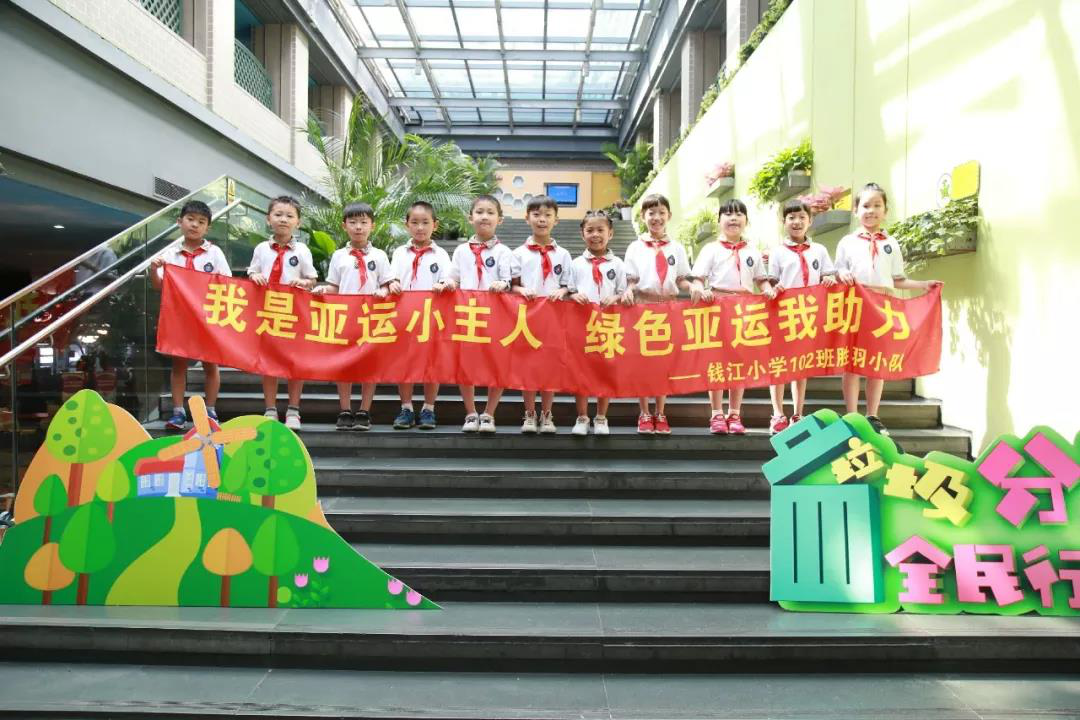 在此,我们胜羽小队的全体队员呼吁:为绿色环境助力,为绿色亚运助力,从自我做起,从身边做起,将生活垃圾进行有效分类和正确投放,做一名“绿色亚运”的践行者与传播者!