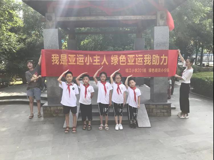 7月28日,钱江小学201中队绿色精灵小分队开展“我是亚运小主人 绿色亚运我助力”暑期实践活动。