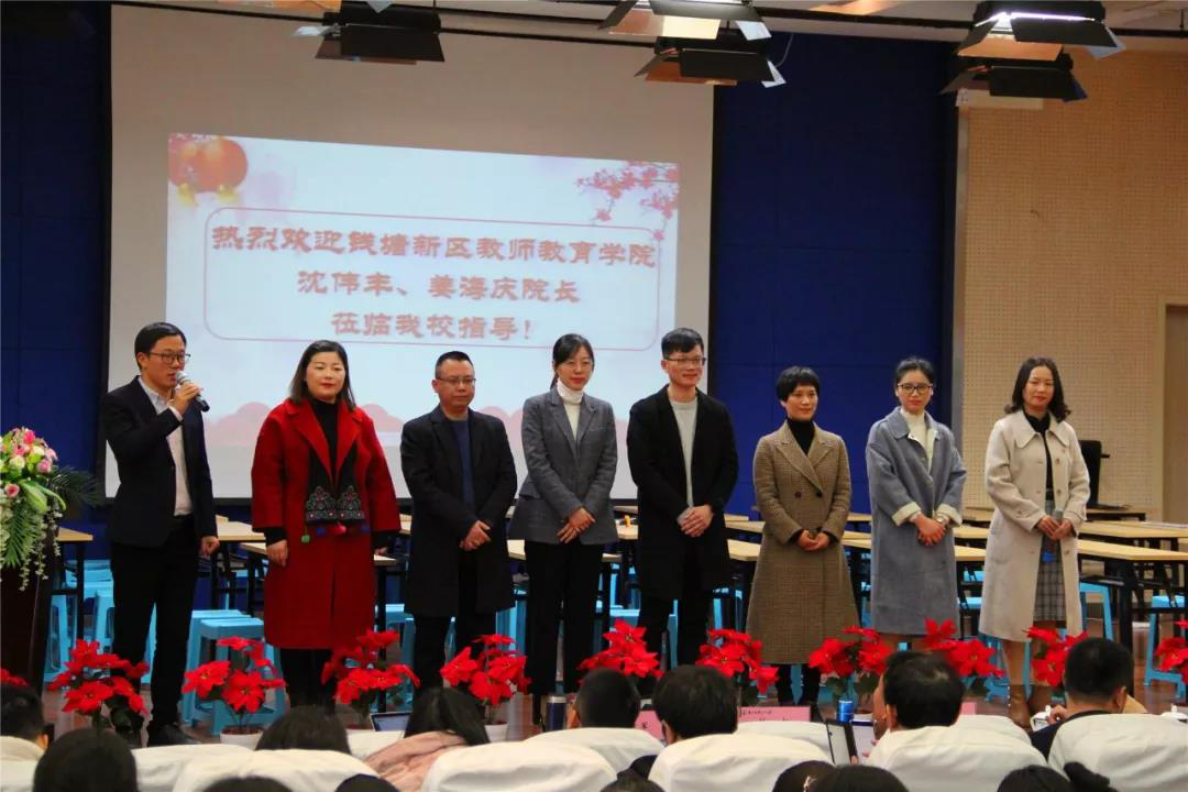 在主持人热情洋溢的开场后,钱塘新区教师教育学院姜海庆副院长致辞。姜院长首先肯定了数学研训活动校际联盟的研究方式,通过自修十分钟,老师们带着自己的思考,积极卷入。同时,姜院长也希望老师们能把这种区域教研的范式嫁接到学校的校本教研中,围绕主题开展研训,学有所获。